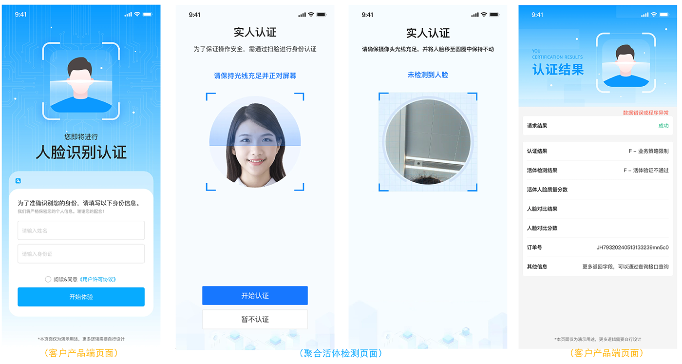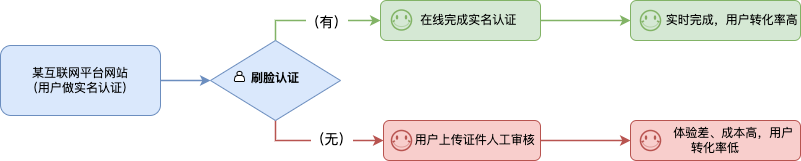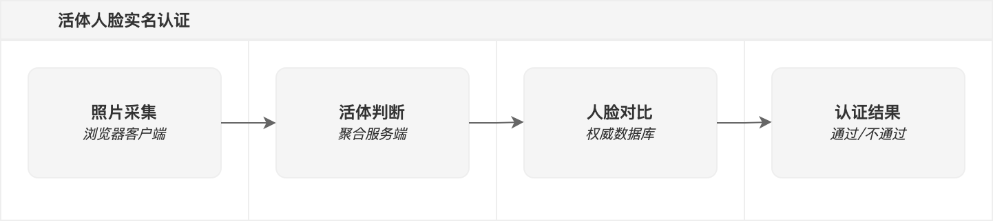 | 网页接入+服务端接入 | 活体检测 | 姓名、身份证号 | 实名结果、人脸图片 | 查询认证结果 |